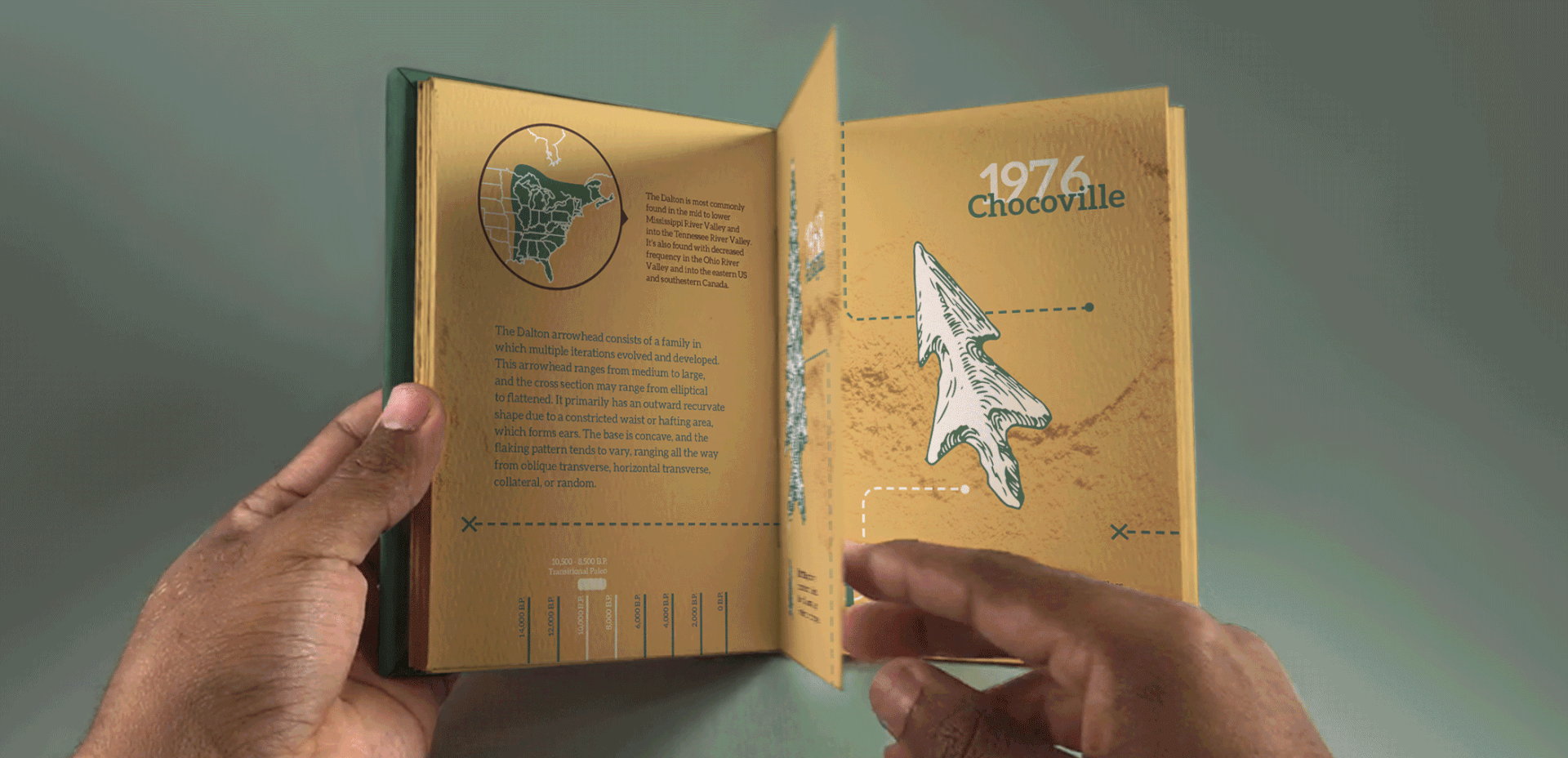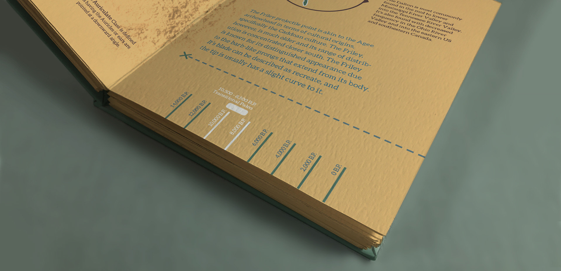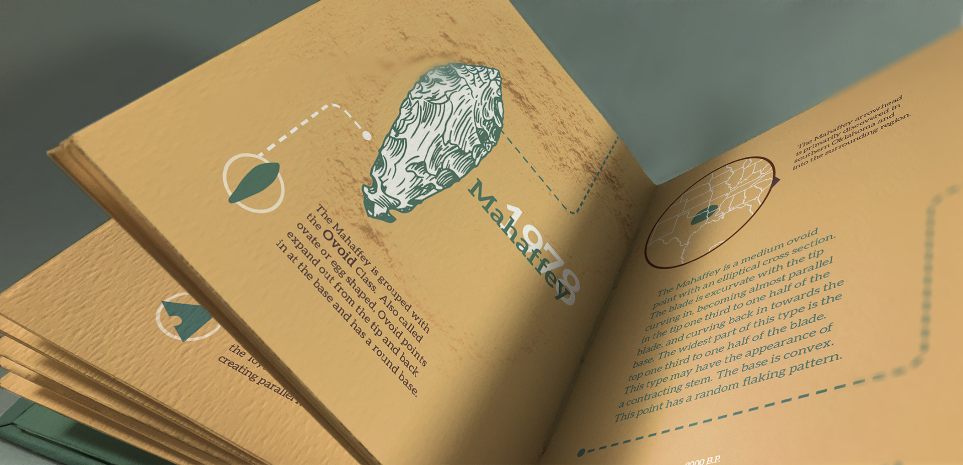 A great deal of time was spent refining hierarchic display of information. The timeline denotes the historic period that these projectile points were active, and a map was made to help visualize these origin points and give each projectile point a sense of place.