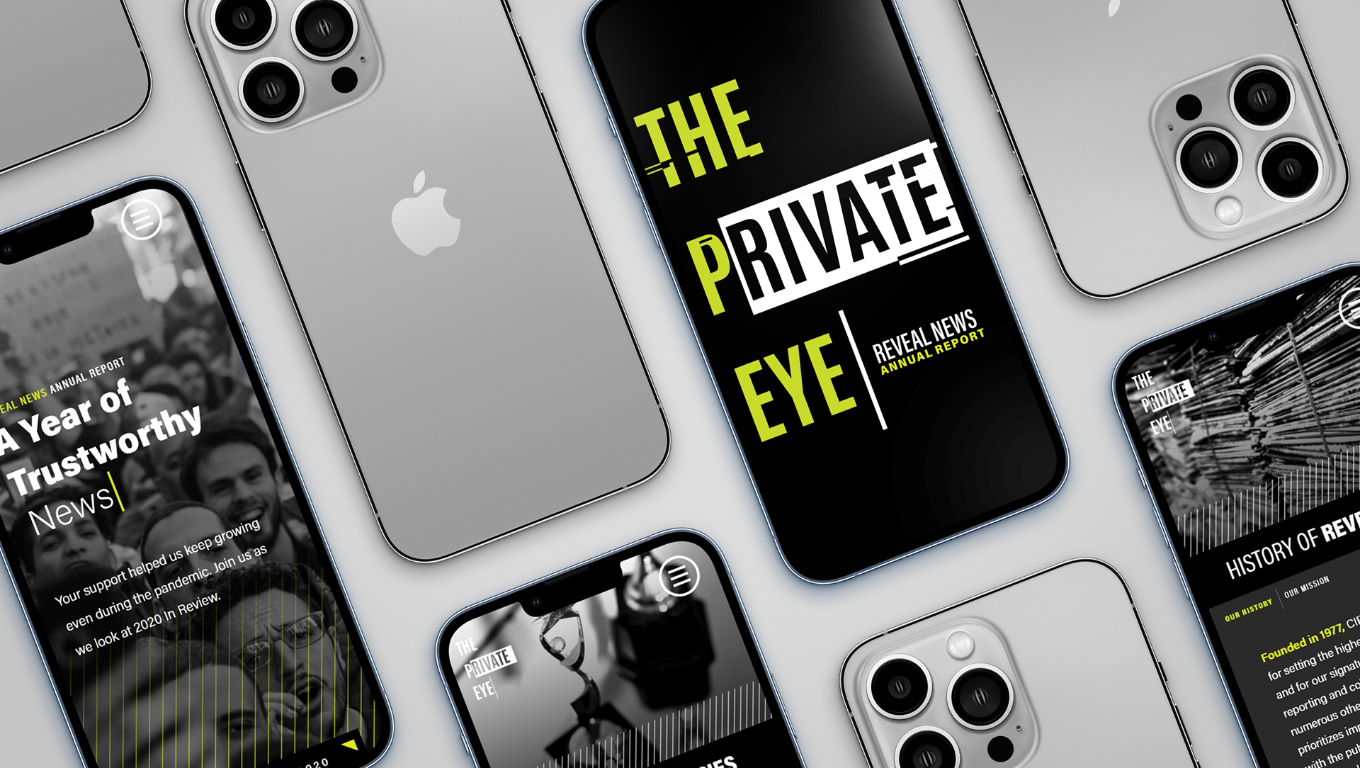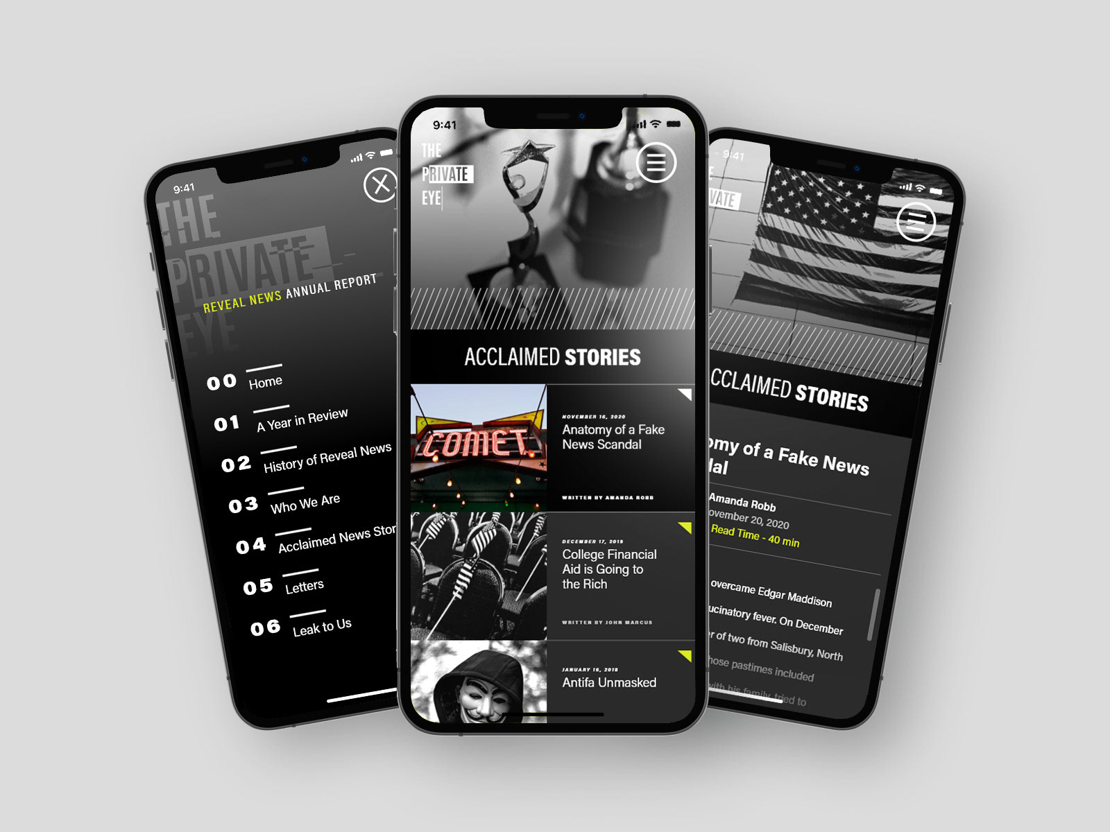 The Companion App was designed to enhance the user experience. The printed annual report features three stories that earned Reveal News several awards for efficient and ethical journalism, while the digital component features a wider database of stories with audiovisual elements such as documentaries and podcasts.